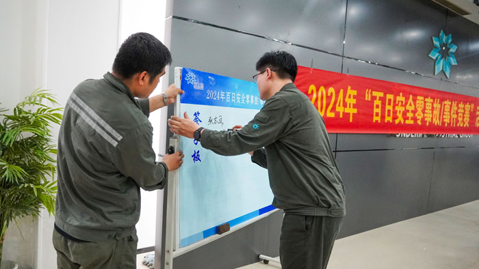 啟動儀式上,由浮法常務副總帶領(lǐng)參會管理者代表在“2024年百日安全零事故/事件競賽活動”看板上簽字。