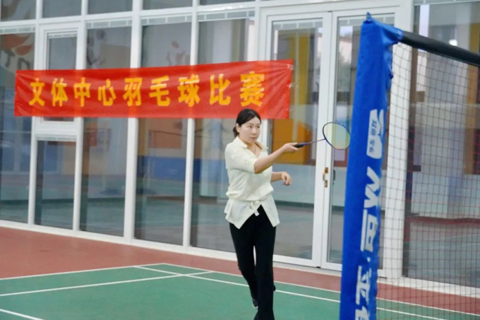 球場上,選手們靈活運用各種戰術,高遠球、扣殺、劈殺、吊球……雙方選手你來我往、奮力拼搏,在文體中心羽毛球場館內不斷突破。