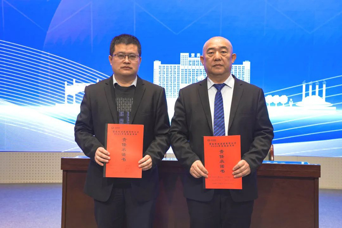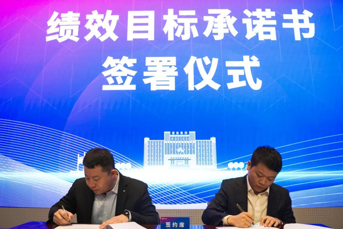 集團總裁姚衡分別與浮法制造中心、銷售一部、天津公司、朝陽公司、銷售二部及深加工生產(chǎn)部、銷售三部、門窗生產(chǎn)部等部門負責人簽署績效目標承諾書。各中心、部門負責人依次接受總裁授旗。