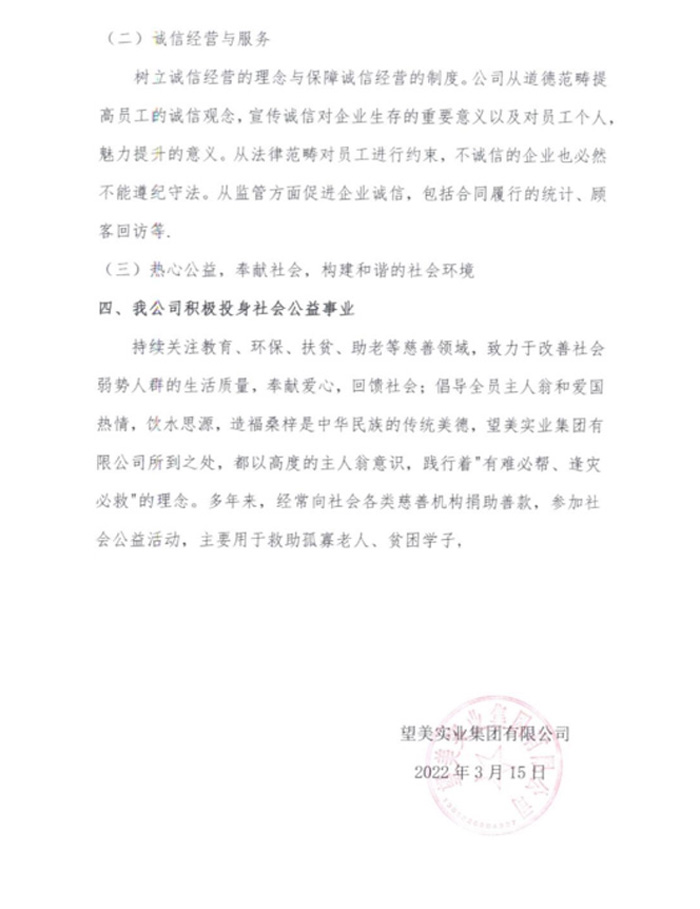 望美實業集團有限公司2021年度社會責任報告