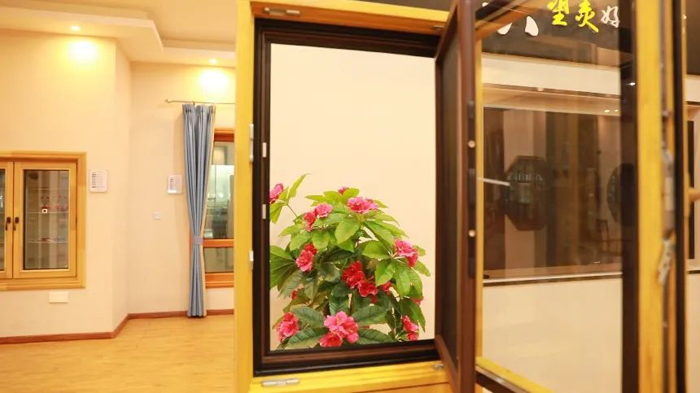 窗體為內木外鋁的結構:室內木材,承載古色茶香的同時隔熱防冷,隔音性強;室外鋁材,保護窗體免受日曬雨淋,保證了門窗的高標準耐久性;