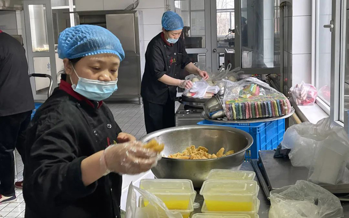 接到報(bào)飯的具體份兒數(shù),食堂工作人員便開始忙碌了。