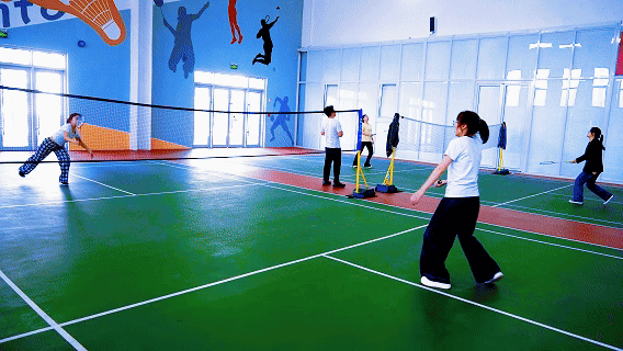 羽毛球場(chǎng)上,選手們靈活跑動(dòng),揮拍扣殺,羽毛球在空中來(lái)回飛舞,讓人目不暇接。