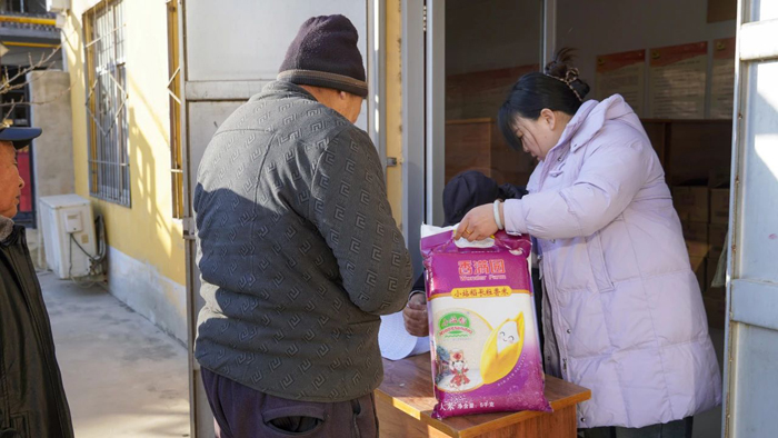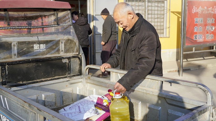本次共慰問姚莊村老人170余戶。望美集團工會代表及行政人員將米面油等慰問物資運送至發放現場,符合條件的家庭到現場領取慰問物品。
