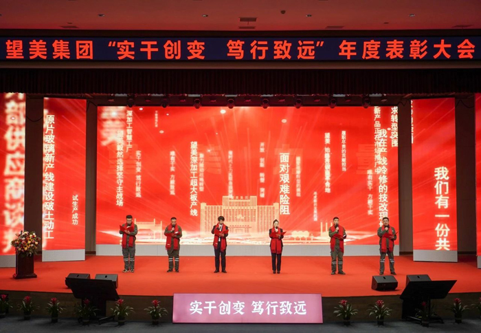 歲序常易,華章日新。1月12日,望美集團在文體中心報告廳組織召開“實干創變 篤行致遠”工作報告會議暨表彰大會。集團總裁姚衡、浮法常務副總、天津執行總經理、朝陽執行總經理、深加工常務副總、門窗常務副總等高層領導出席會議,各部門負責人、優秀團隊/個人獲獎代表近300余人參加了本次大會。