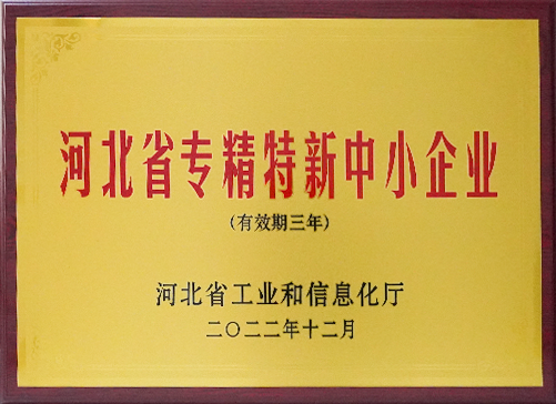2022年獲河北省專精特新中小企業